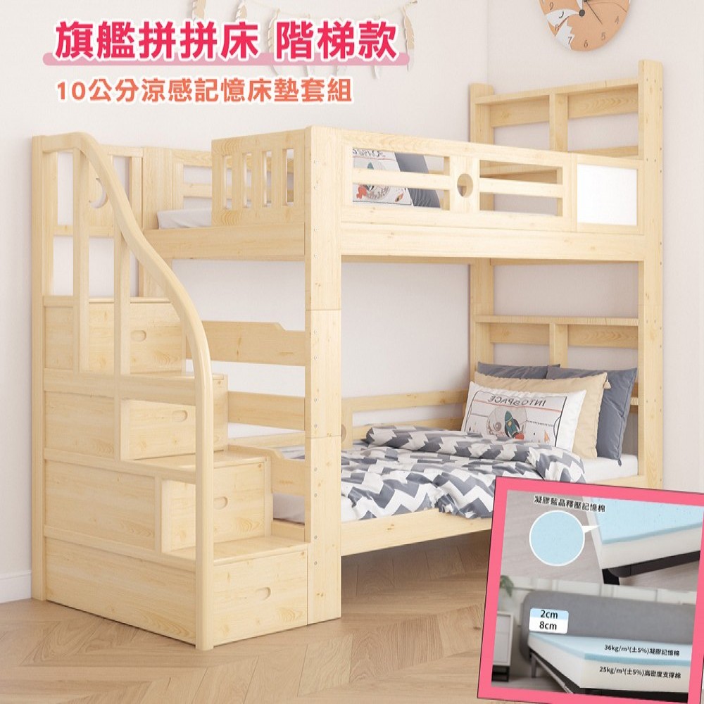 原木旗艦款拼拼床(標準單人或單人加大)階梯款