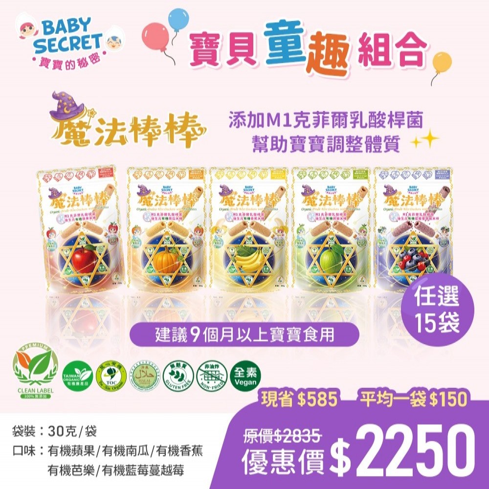 【BABY SECRET 寶寶的秘密 】 魔法棒棒M1益生菌有機米棒~15袋(口味任選)