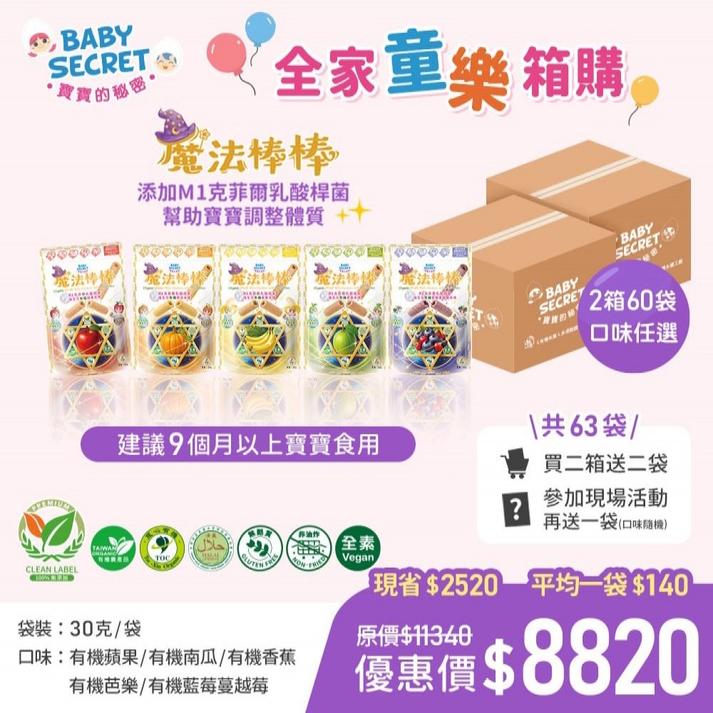 【BABY SECRET 寶寶的秘密 】 魔法棒棒M1益生菌有機米棒~60+2+1袋(口味任選)