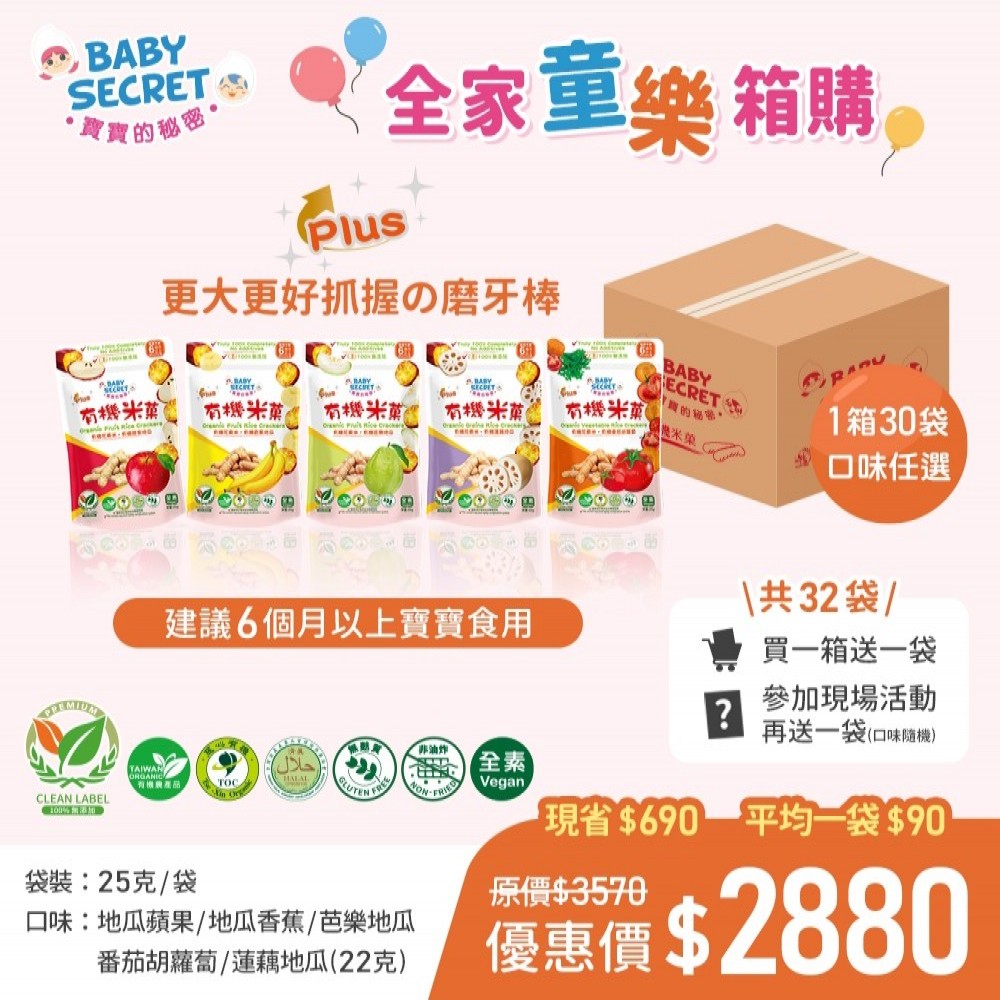 【BABY SECRET 寶寶的秘密 】 PLUS有機米菓~30+1+1袋(口味任選)