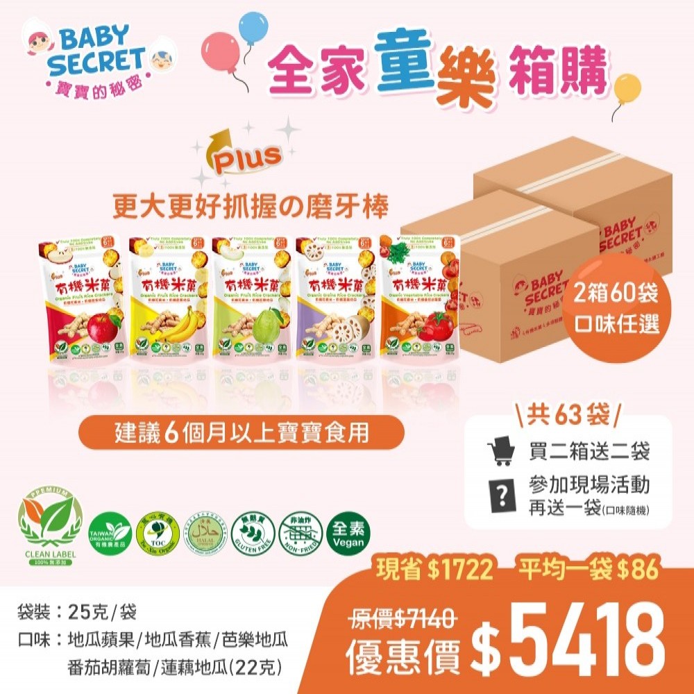 【BABY SECRET 寶寶的秘密 】 PLUS有機米菓~60+2+1袋(口味任選)