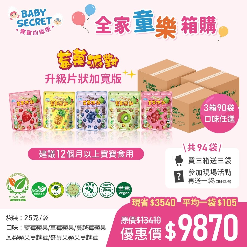 【BABY SECRET 寶寶的秘密 】 莓菓派對有機米餅~90+3+1袋