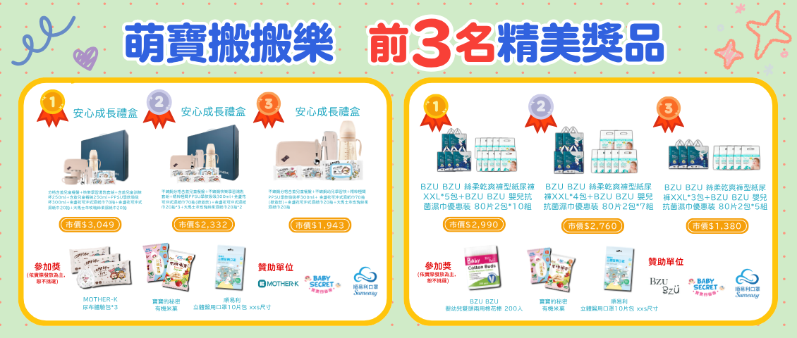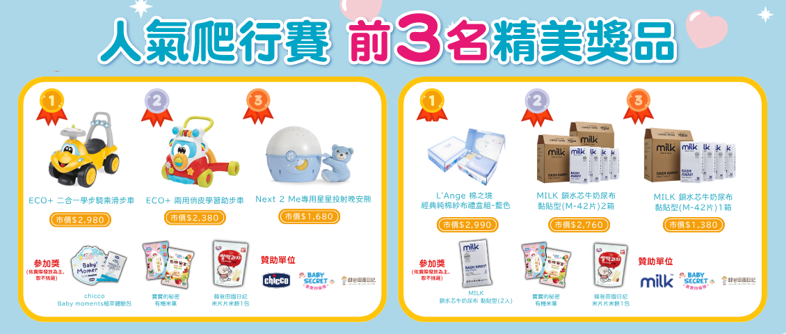 ※ 寶貝運動會比賽資格以各個活動設定的年月日年齡層為主,寶貝歲數僅供參考